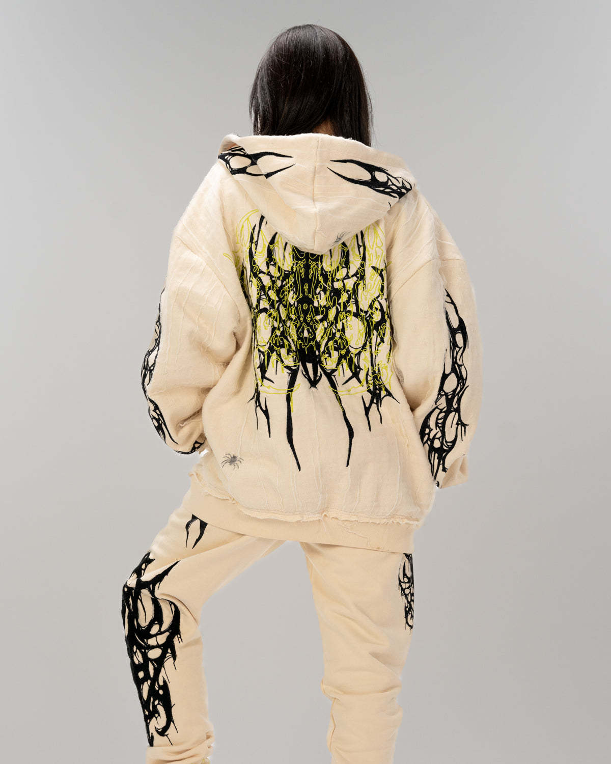 - All over screen print, embroidered and tufted graphics